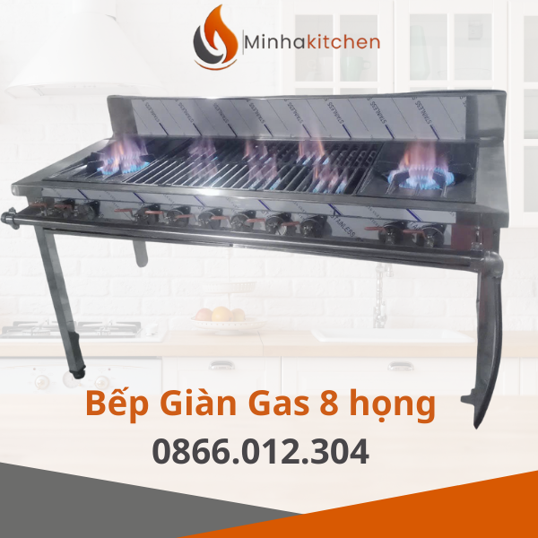 Là bếp gas công nghiệp, bếp giàn 8 họng có: