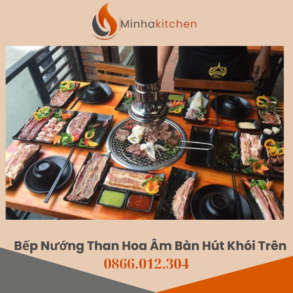 Bếp nướng than âm bàn hút dương thường kết hợp với hệ thống hút khói phía trên. Chủ quán có thể lựa chọn:
