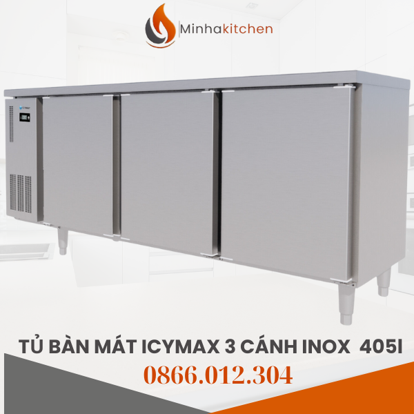 Tại Hà Nội, Minhakitchen là đơn vị phân phối chính hãng bàn lạnh 3 cánh công nghiệp dung tích 405L, giá chỉ 28.500.000 VNĐ, bảo hành dài hạn – giao hàng tận nơi toàn quốc.