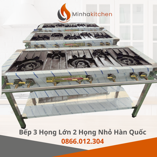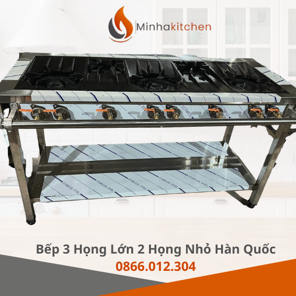 Sự kết hợp giữa 3 họng lớn công suất mạnh và 2 họng nhỏ giúp đầu bếp điều phối công việc linh hoạt. Bạn có thể vừa xào lửa đại (khè) ở họng lớn, vừa đun nước dùng hoặc hầm xương ở họng nhỏ mà không cần thay đổi vị trí đứng.