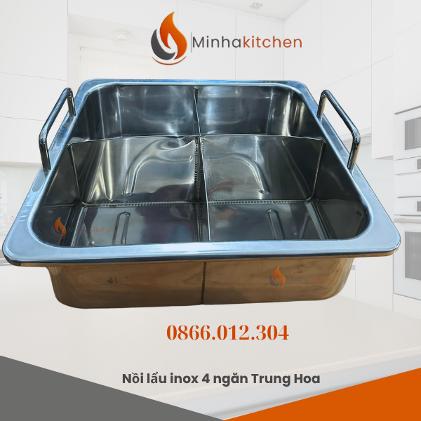 Bếp lẩu 4 ngăn nhà hàng là bộ bếp từ vuông âm bàn kết hợp cùng nồi lẩu inox vuông 4 ngăn (lẩu 4 vị), chuyên dùng cho các mô hình kinh doanh lẩu chuyên nghiệp.